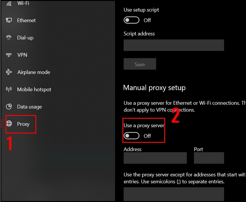 Với trường hợp này, bạn nên tắt máy chủ Proxy ở Windows Settings. Để tắt máy chủ proxy, hãy thực hiện theo các bước dưới đây.