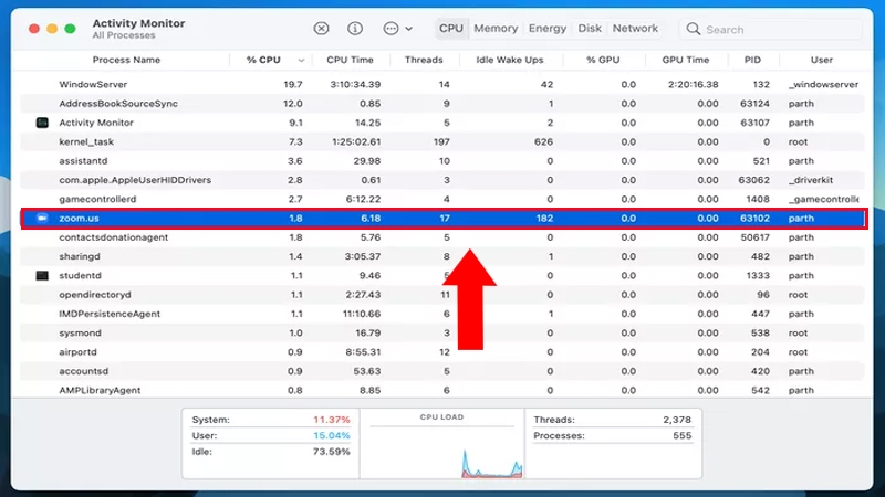 Với MacBook: Bạn có thể sử dụng phím Command + Space để mở Spotlight Search > Mở Activity Monitor > Tìm Zoom và nhấn nút Stop trên thanh menu.