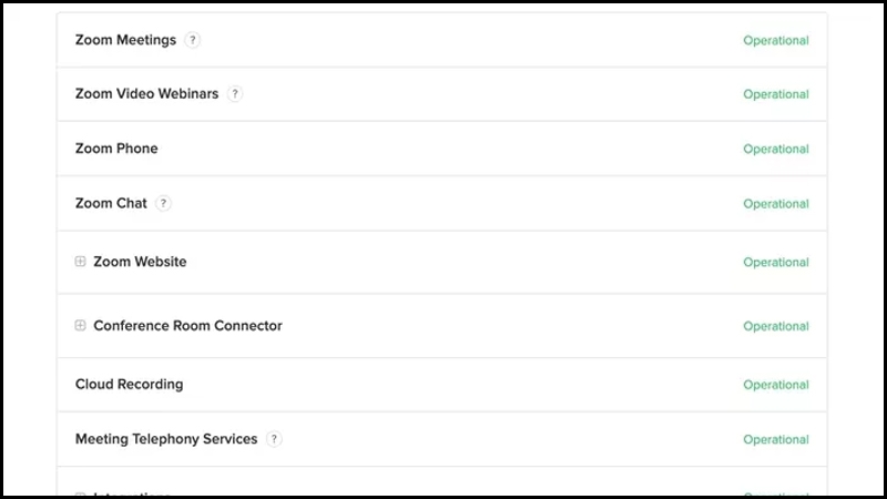 Hãy thử cách này trước khi sử dụng những cách dưới. Có khả năng lỗi không phát sinh từ máy tính của bạn, mà có thể là do máy chủ của Zoom đang có vấn đề. Bạn sẽ không thể sửa lỗi 5003 hay bất kì lỗi nào khác nếu như máy chủ của ứng dụng bị trục trặc. Để biết được các máy chủ của Zoom có vấn đề hay không, hãy vào trang chủ của Zoom và nơi hiển thị các trạng thái máy chủ của họ.