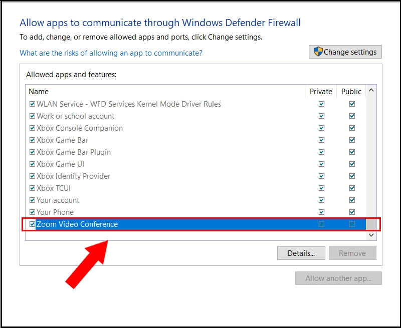 Hãy xem liệu tường lửa trong thiết bị của bạn có cho Zoom thông qua để sử dụng kết nối Internet hay không. Với Windows, hãy tìm kiếm Windows Defender Firewall trên thanh Taskbar > Chọn Control Panel > All Control Panel Items > Vào Windows Defender Firewall > Chọn Allowed apps > Tìm đến Zoom Video Conference.